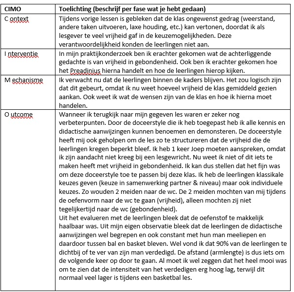 Gereflecteerd middels het CIMO-model: