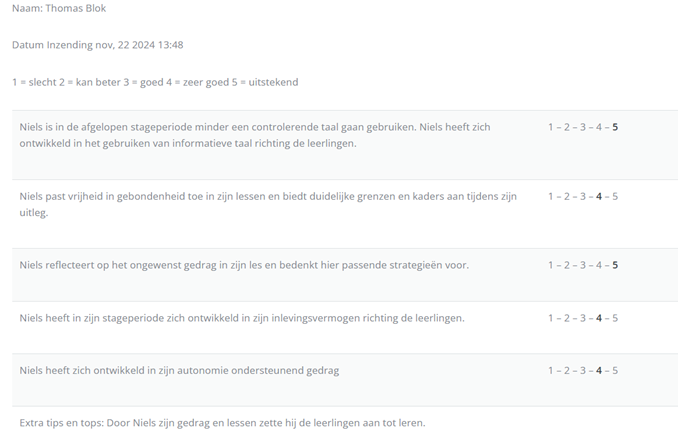 Mijn persoonlijk leerdoel vanuit vorige semester richting semester 3 was, om mijn kwaliteiten en valkuilen bespreekbaar te maken. Dit heb ik gedaan. Zo heb ik als feedback ook nieuwe kwaliteiten en valkuilen meegekregen waarvan ik mij nog niet bewust was. Een kwaliteit is dat ik heel makkelijk contact maakt met de leerlingen en dit dus bijdraagt aan het autoritatief lesgeven. Een valkuil van mij is dat ik wel eens een chaotische instructie kan geven doordat ik vaak van alles wil vertellen. Ook heb ik mijzelf ontwikkeld door informatie te werven bij experts. Verder heb ik mijzelf ontwikkeld door hulp te vragen bij mijn stagebegeleider als het gaat om ongewenst gedrag. Tevens heb ik een gesprek gevoerd met de coördinator van leerjaar 3, waarmee ik normaal gesproken niet snel een gesprek mee zou beginnen.