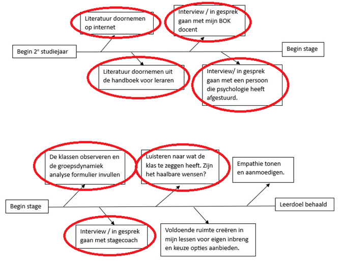 Hieronder zie je visueel de route die ik heb doorlopen om mijn leerdoel te behalen. Wat met rood is omcirkelt vind je hieronder terug.