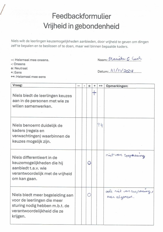 Waar ik achteraf minder tevreden over ben is dat ik niet al mijn leerdoelen bespreekbaar heb gemaakt met mijn stagebegeleiders. Wij hebben vooral gezamenlijk gewerkt aan mijn POP (pedagogisch) en mijn instructies (vakdidactisch). Nu wil ik in het nieuwe semester al mijn leerdoelen bespreken met mijn stagebegeleiders en met hun een passende leerroute hierbij vinden.